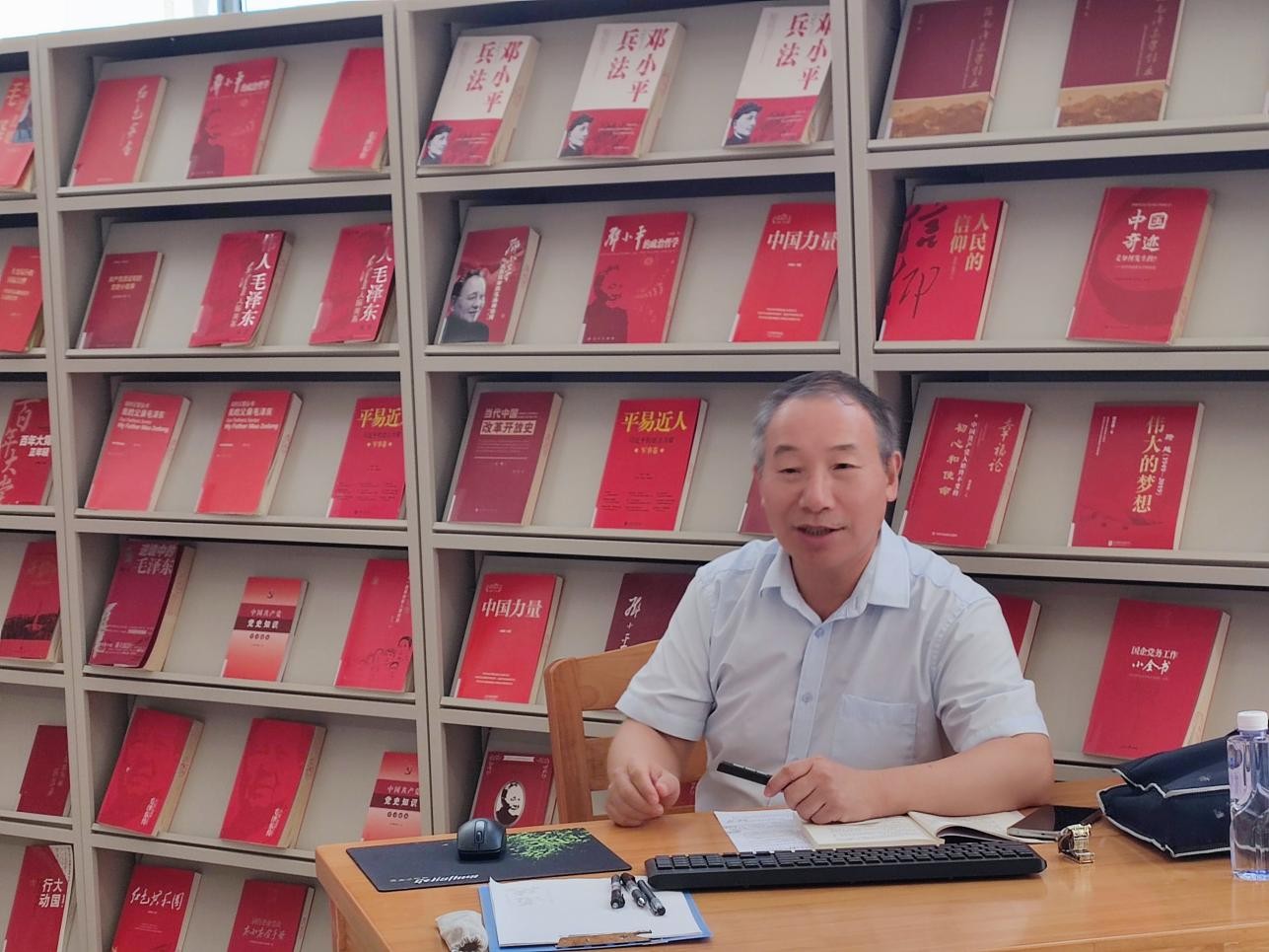 4月26日下午5:00,胡细木副教授在图书馆三楼“红色阅读角” 举办红色知识专题讲座,本期讲座的主题是从入党誓词的发展演变中感悟信仰的力量。(张新玲摄)