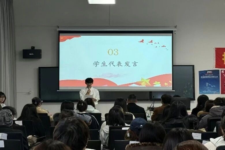 学生代表孙研钊围绕“青年如何认识学习与实践马克思主义”分享个人体会,他表示青年朋友们应当认清自身在当代洪流中应该承担的责任与应有的担当。他呼吁广大青年应从理论学习中筑牢信仰根基,在实践锻炼中锤炼过硬本领,更要在时代征程中书写青春答卷。