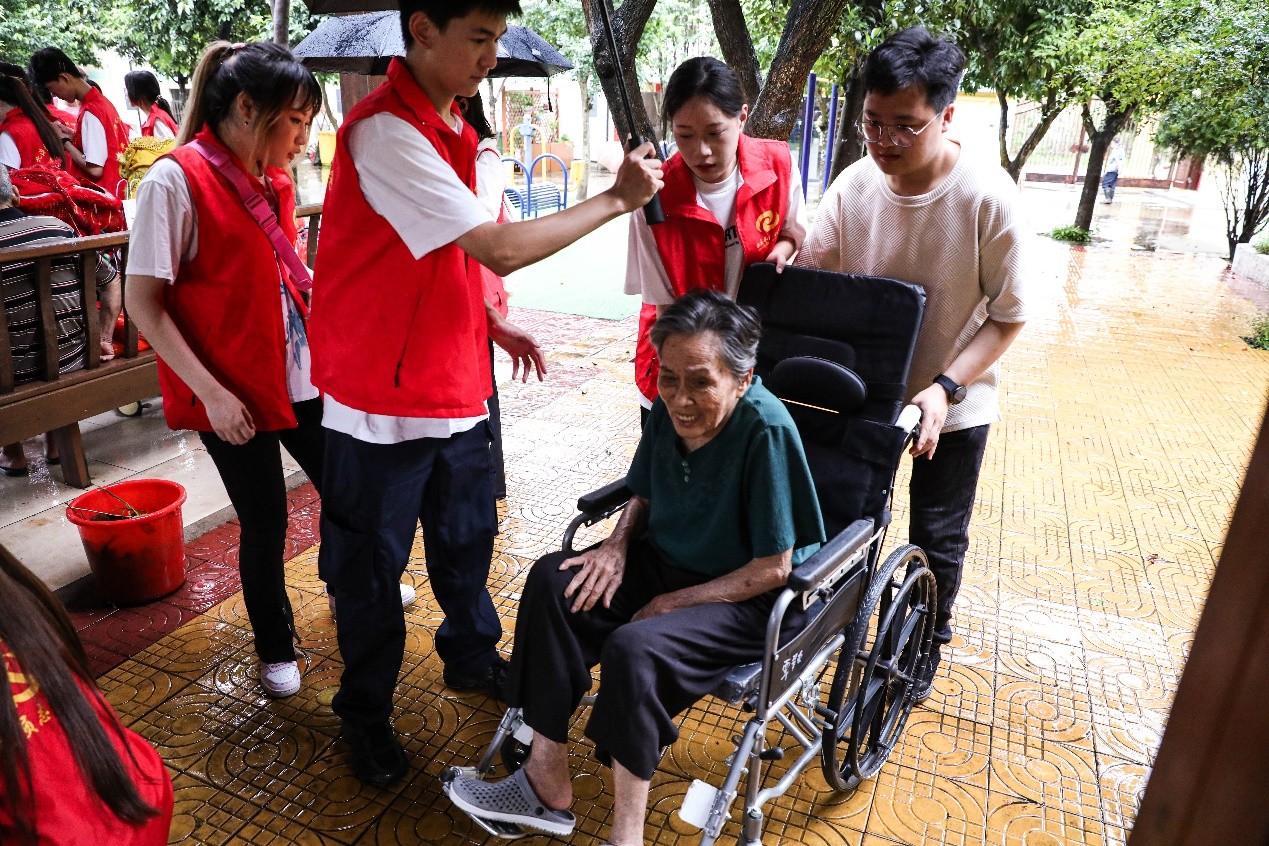 2024 年 5 月 26 日下午,我校建筑与环境艺术学院分团委的学生作为志愿者前往北海市银海区银滩养老院。尽管天气欠佳,但这丝毫阻挡不了我校志愿者为爷爷奶奶带去快乐的决心。当我们踏入敬老院,便以微笑和问候拉近与老人们的距离,陪他们聊天,倾听他们的故事,一同分享喜怒哀乐。我们还为老人们精心准备了精彩节目,用歌声和舞蹈点燃他们的生活热情。