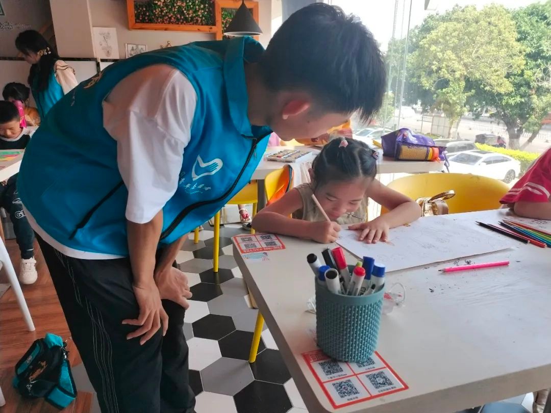 支教,是一种磨炼,一种奉献,更是一份收获。在秋日格外温暖的天气里,北海艺术设计学院校团委青年志愿者协会的志愿者们洋溢着高昂的热情于10月29日再次进入侨北、黄海路等五个社区组织了手工、绘画等支教活动。