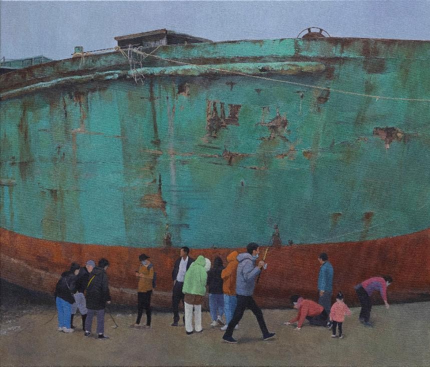 绘画 1904 班 徐志海《海滩上的大船》120×90cm 布面油画 指导教师:张湘中