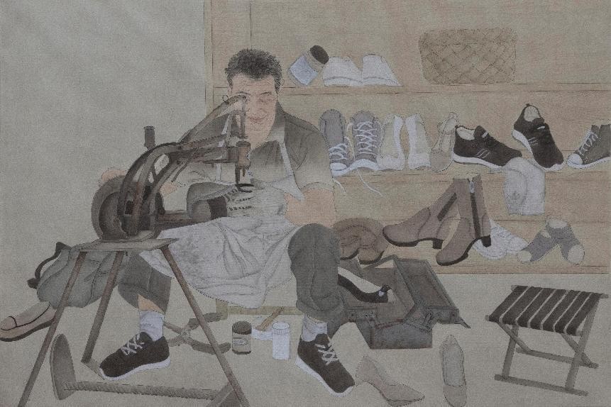 绘画 1901 班 魏晓凤《被遗忘的“匠人”》105×160cm 工笔设色 指导教师:熊晓翠