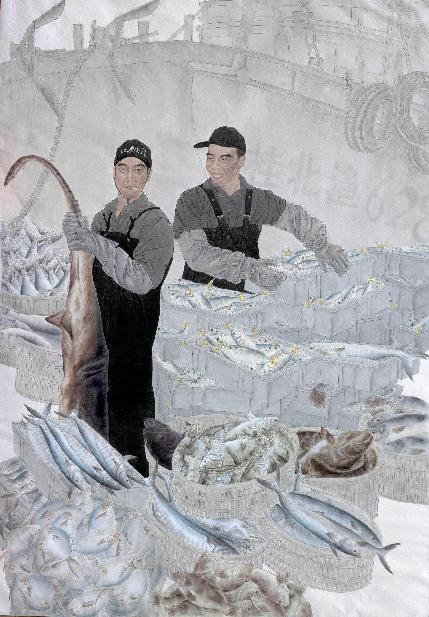 绘画 1902 班 叶欣《渔·鱼》210×140cm 工笔设色 指导教师:陈建江