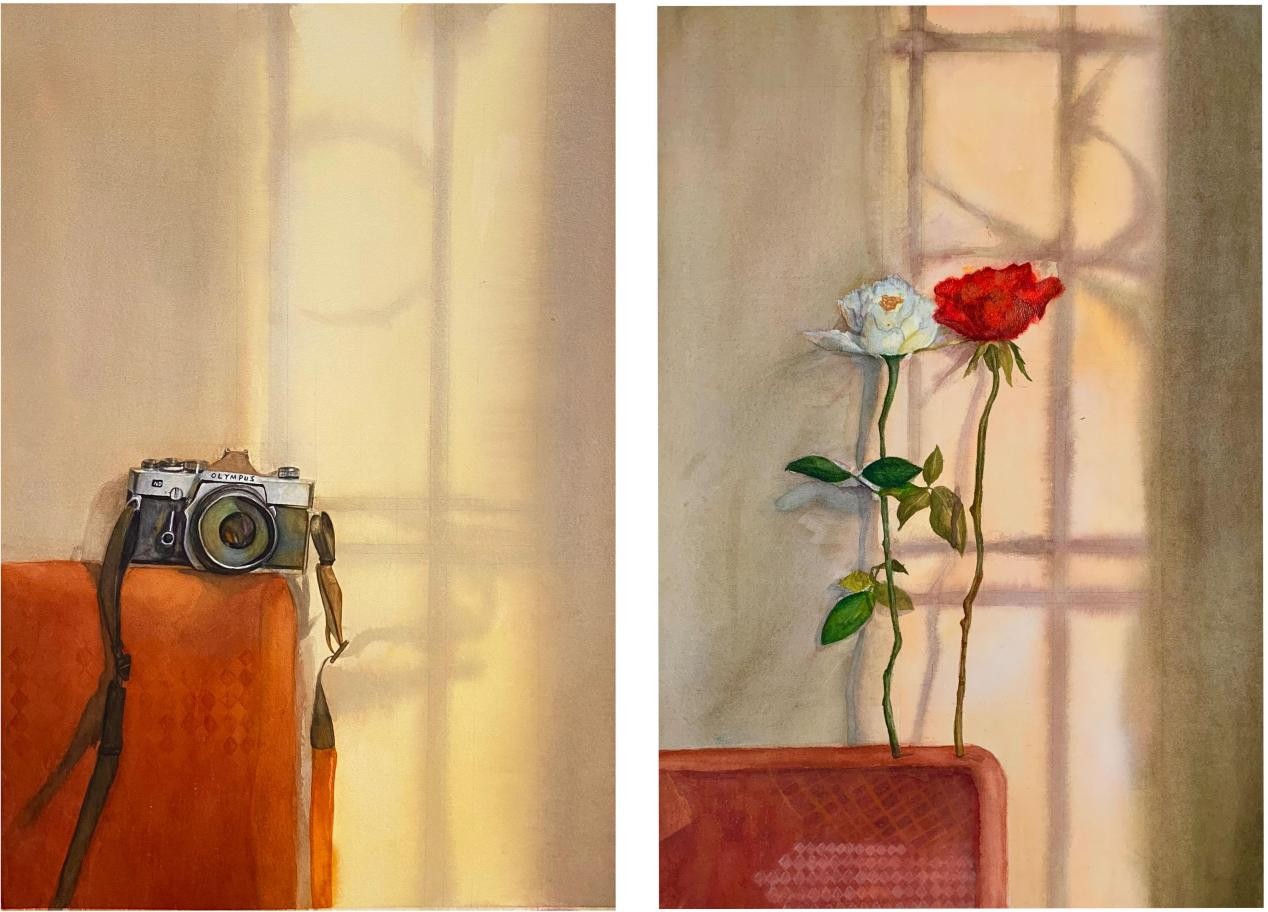 绘画 1906 班 韦琅娜《玫瑰》52×74cm 水彩 指导教师:段凝