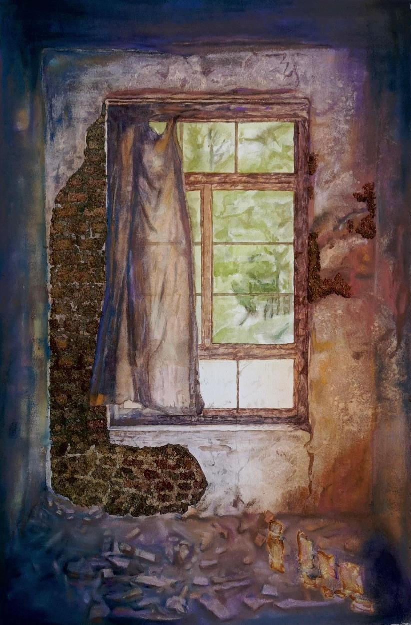 绘画 1906 班 周俞均《破败》48×51cm 水彩 指导教师:段凝