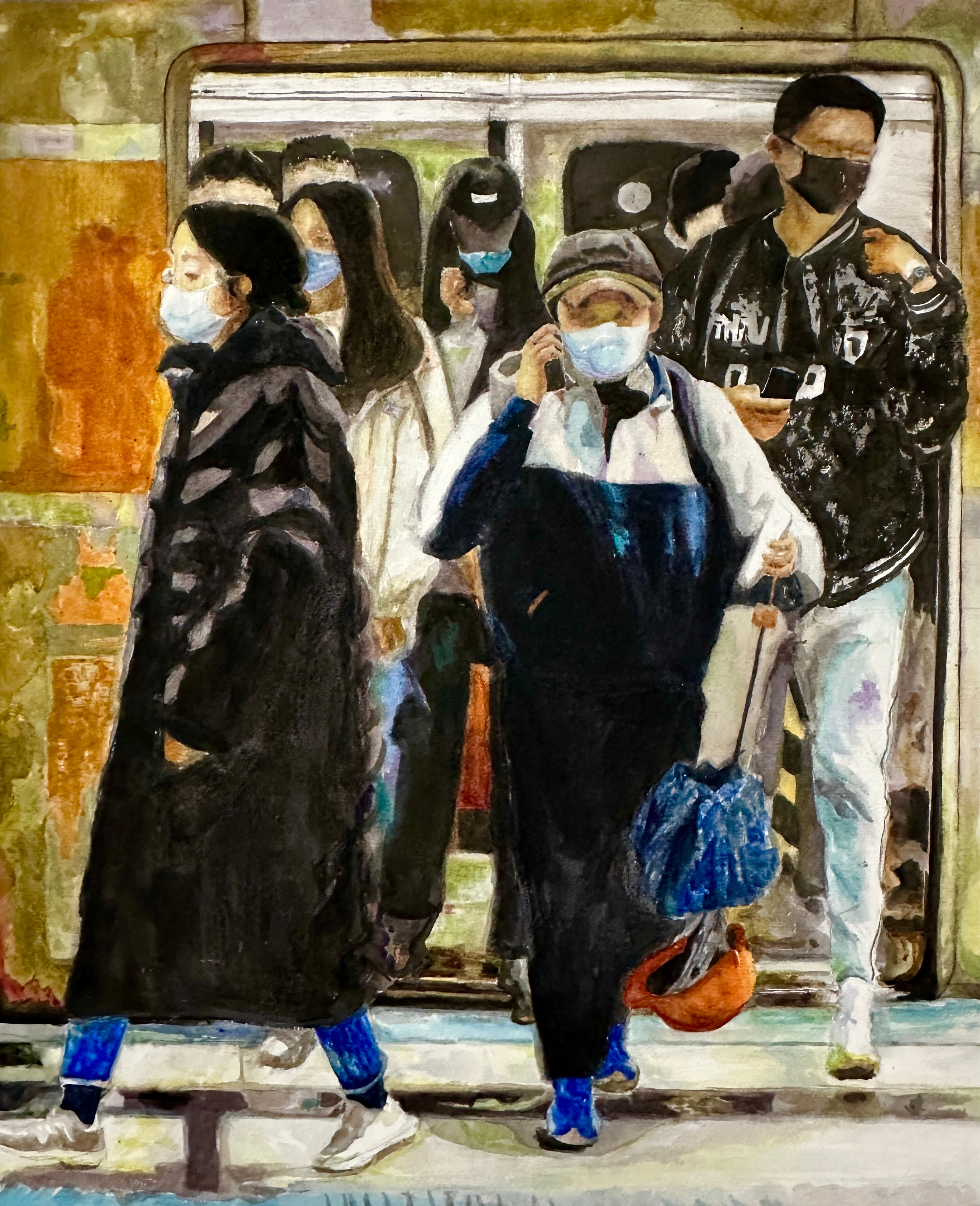 周娜娜 《地铁上》 53x76cm  指导教师:刘广滨、陈亚宗