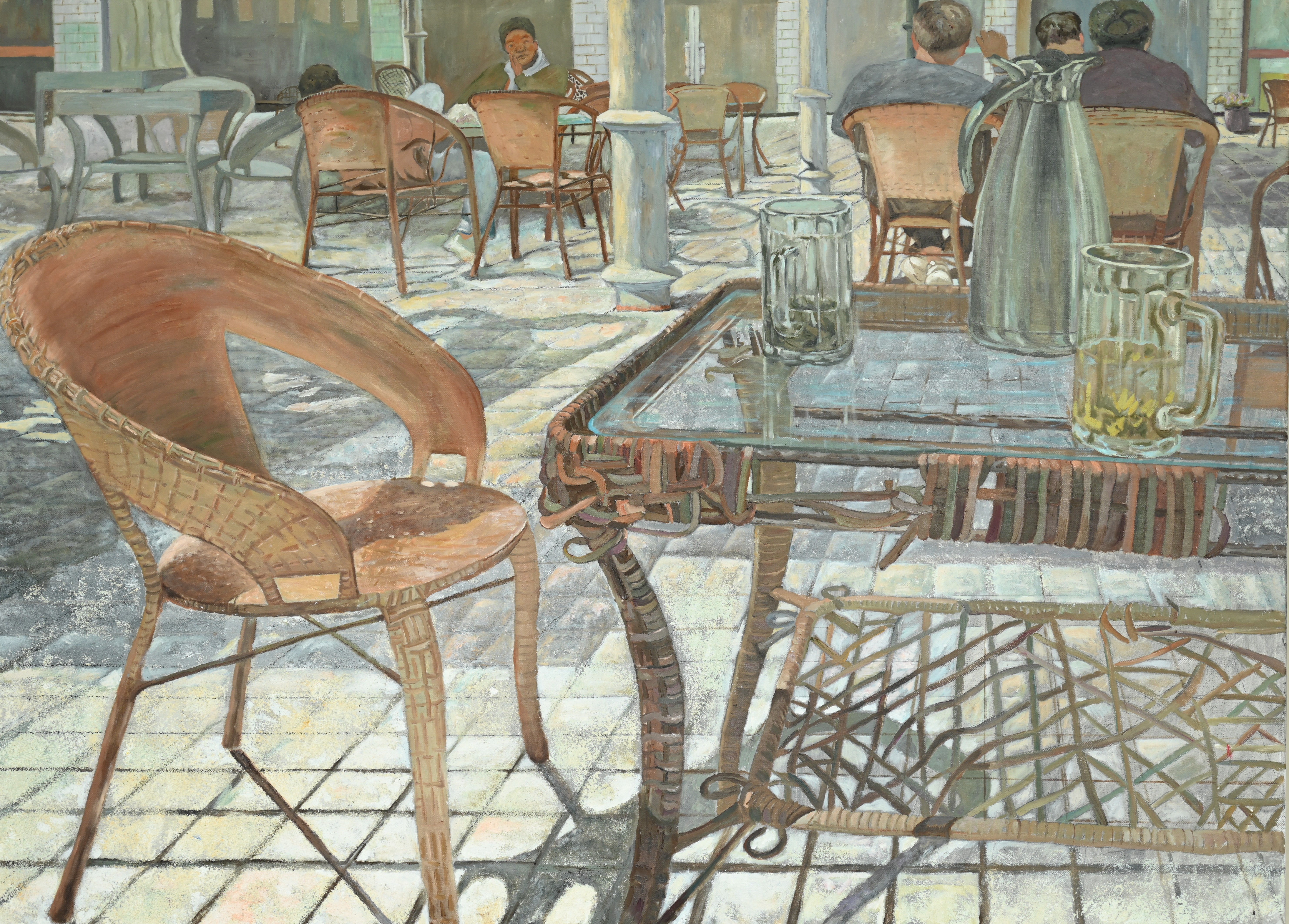 绘画2104班 符东琼 《逸咖时光》 120×120cm 指导教师:刘斌、程宣睿