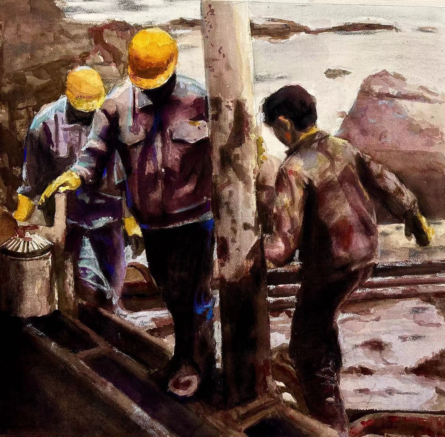 范宝怡 《“画说”工务人》 53x76cm 指导教师:刘广滨、陈亚宗