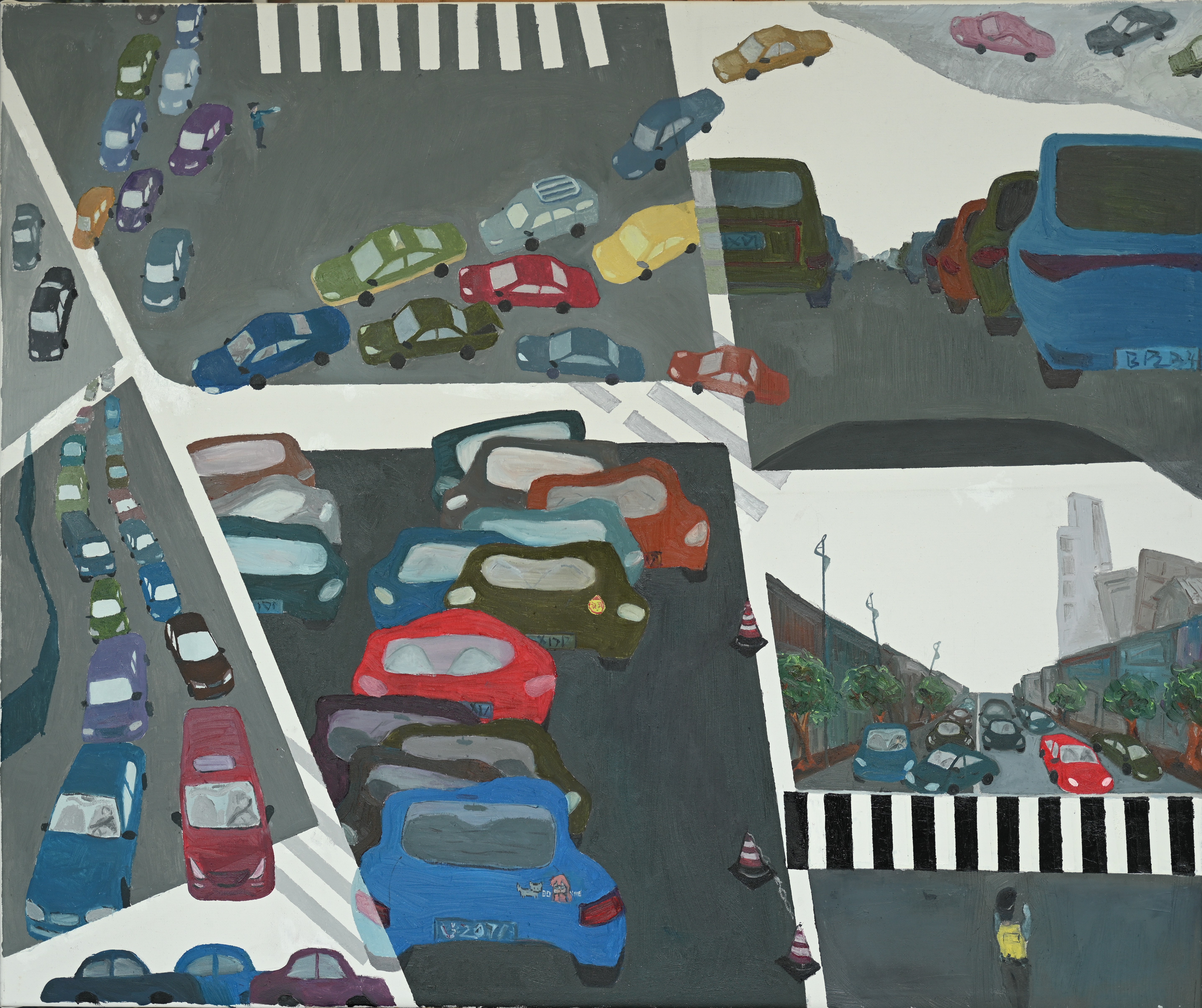 绘画2103班 张销华 《车水马龙》 100×120cm 指导教师:龚为、谢瑞