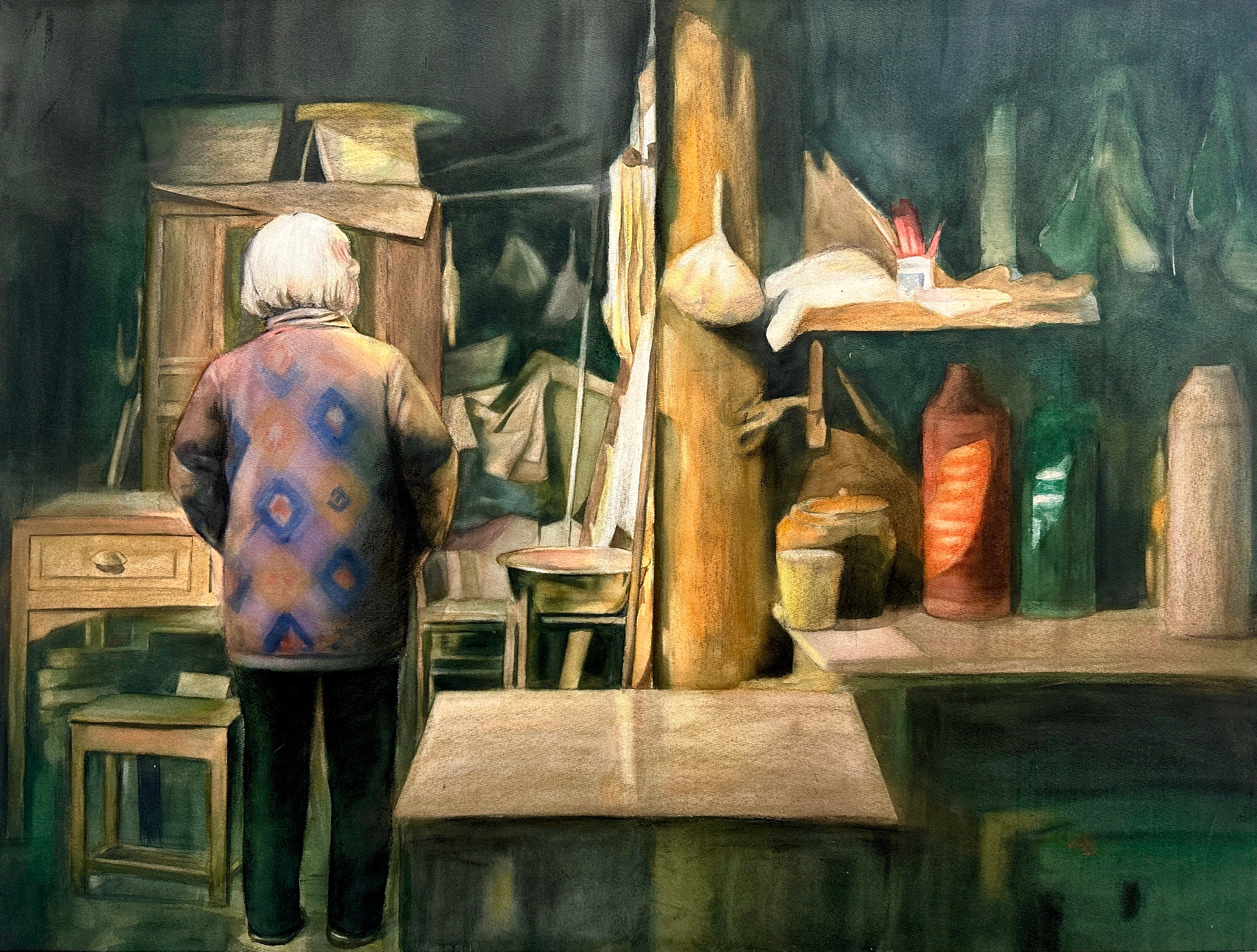 绘画2104班 何涛 《熏年》 100×120cm 指导教师:刘斌、程宣睿