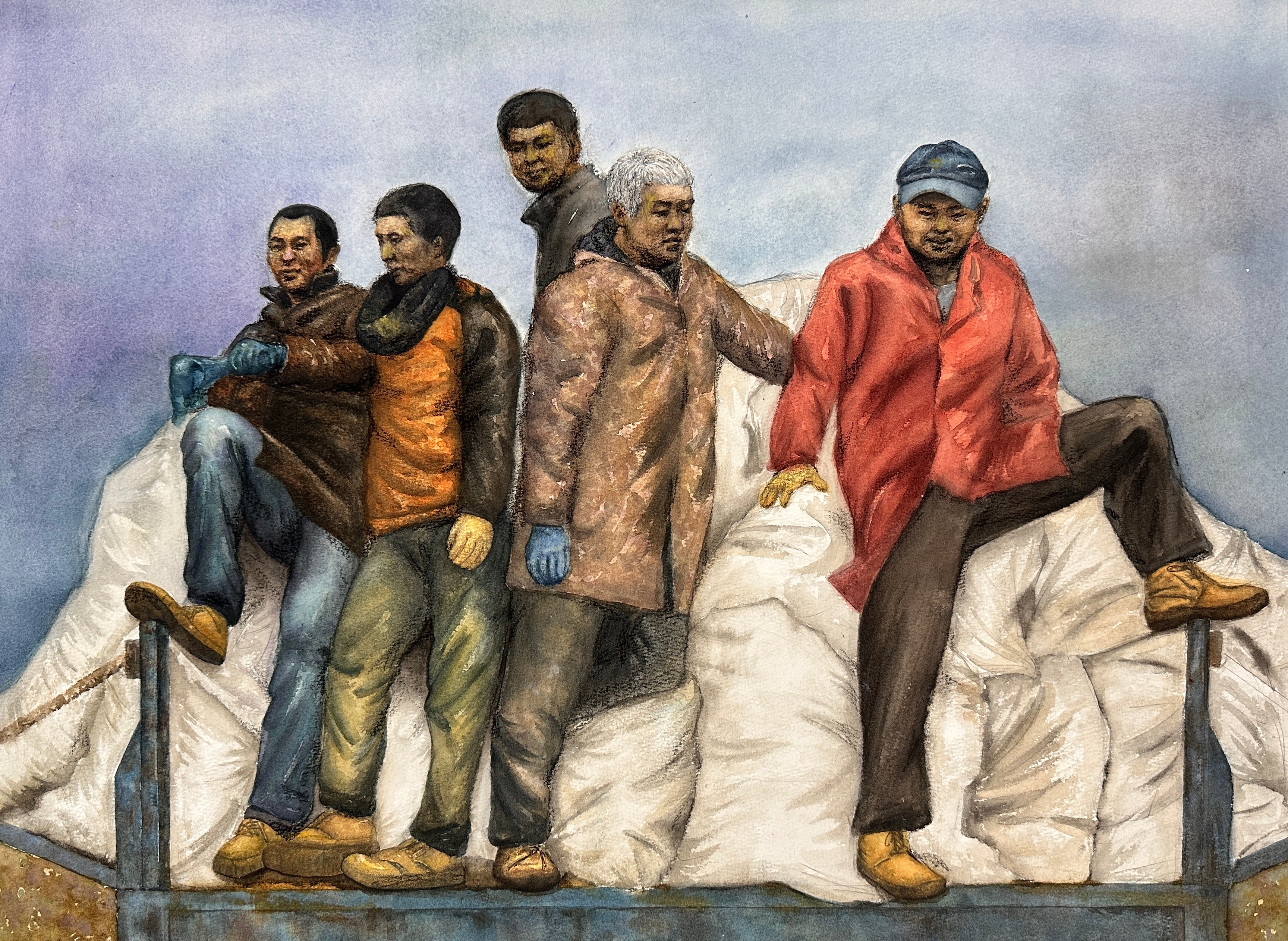 绘画2105班 王敏帅 《卸货完毕》 120×180cm 指导教师:袁志伟