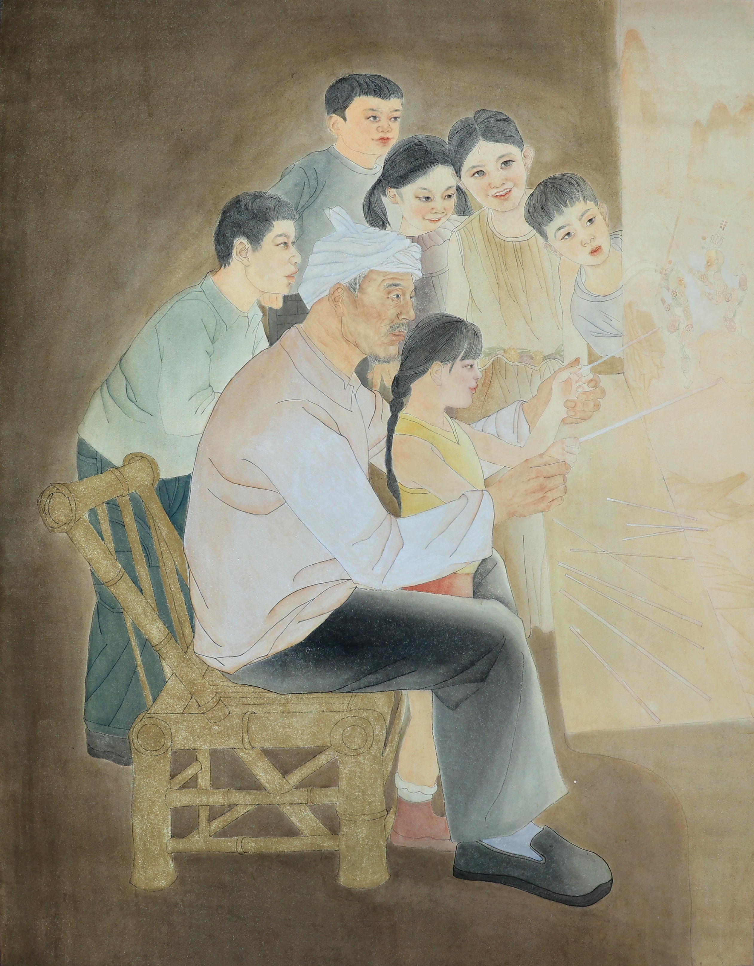 三等奖 绘画2101班 马逸璇 《幕绘传彩》120×150cm 指导教师:熊晓翠