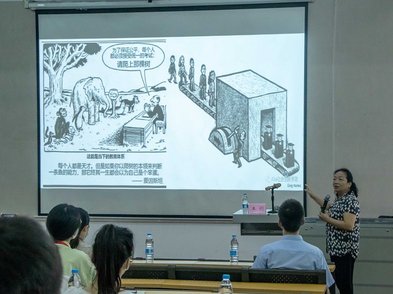 9月24日,广西师范大学博士生导师王枬教授开展了以“现代教育理念与青年教师专业成长”为主题的专题讲座,介绍了青年教师的主要特征,具有代表性的现代教育理念以及教师专业成长的现状及关键等内容。