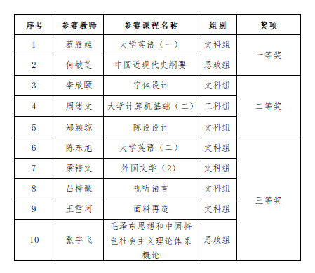 附件:北海艺术设计学院第九届青年教师教学竞赛获奖名单