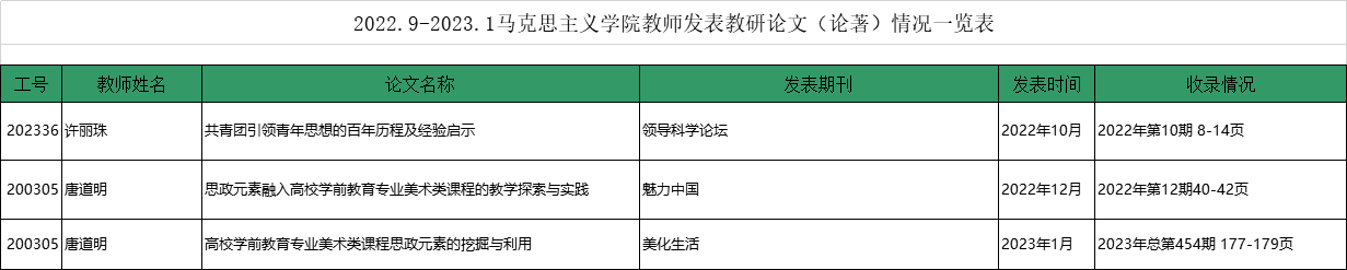 2022.9-2023.1马克思主义学院近三学年教师发表教研论文(论著)情况一览表