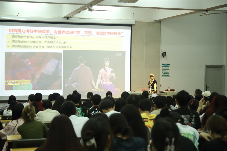 讲座过程中,田培培教授指出,我国拥有历史悠久的多民族优秀传统文化,其中蕴含着丰富的舞蹈资源,随着历史的不断发展,中国舞蹈除了传承古代优秀的舞蹈文化、舞蹈形式外,还紧跟时代步伐,不断进行改革创新,正在以一种崭新的姿态屹立于世界艺术大舞台之中。田教授表示,广大师生要用世界眼光,审视中国舞蹈艺术,注重命运共同体语境,在舞蹈艺术中共情,更要用高级的审美和创意塑造生动的中国形象。
