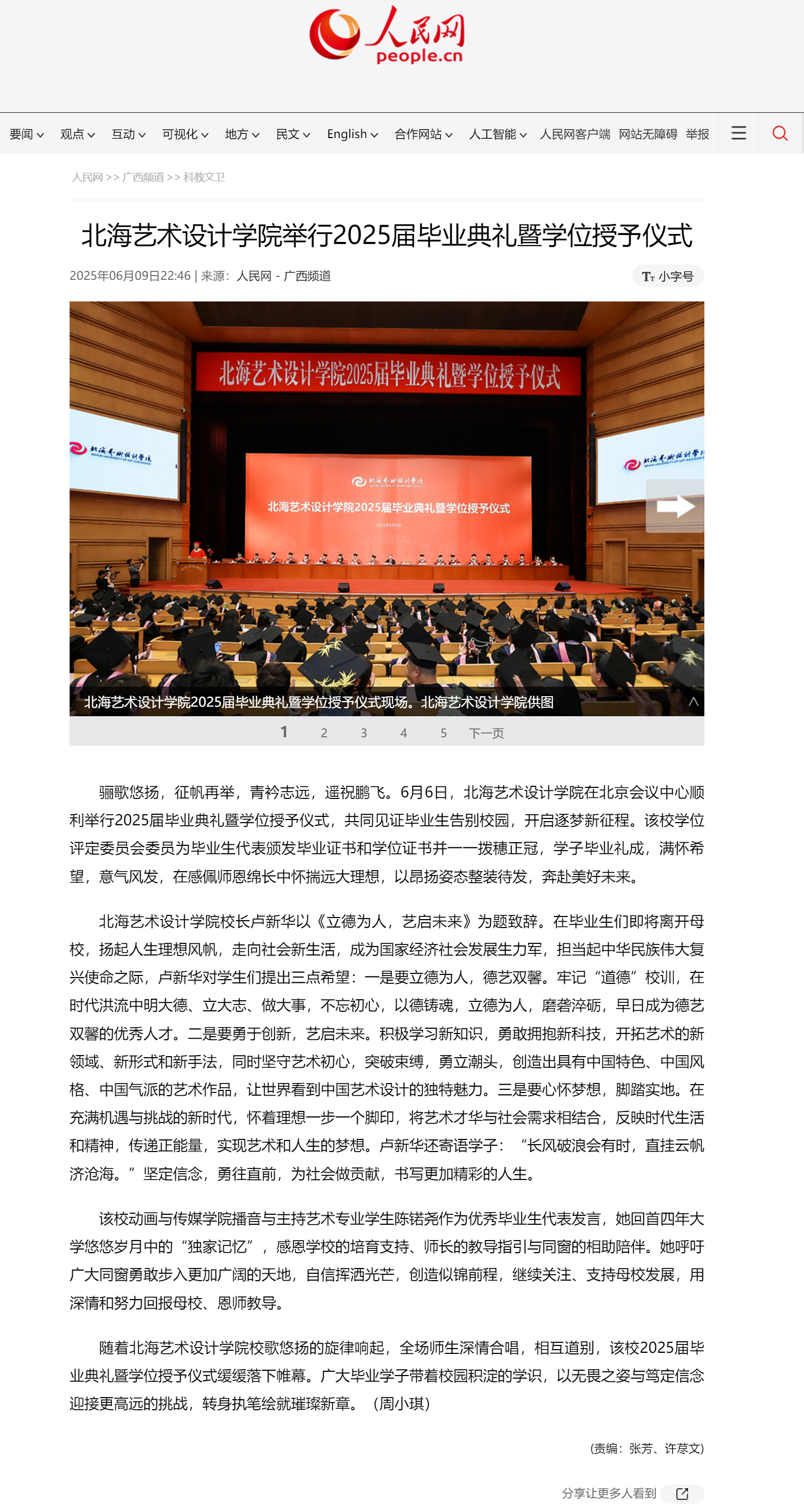 人民网:北海艺术设计学院举行2025届毕业典礼暨学位授予仪式