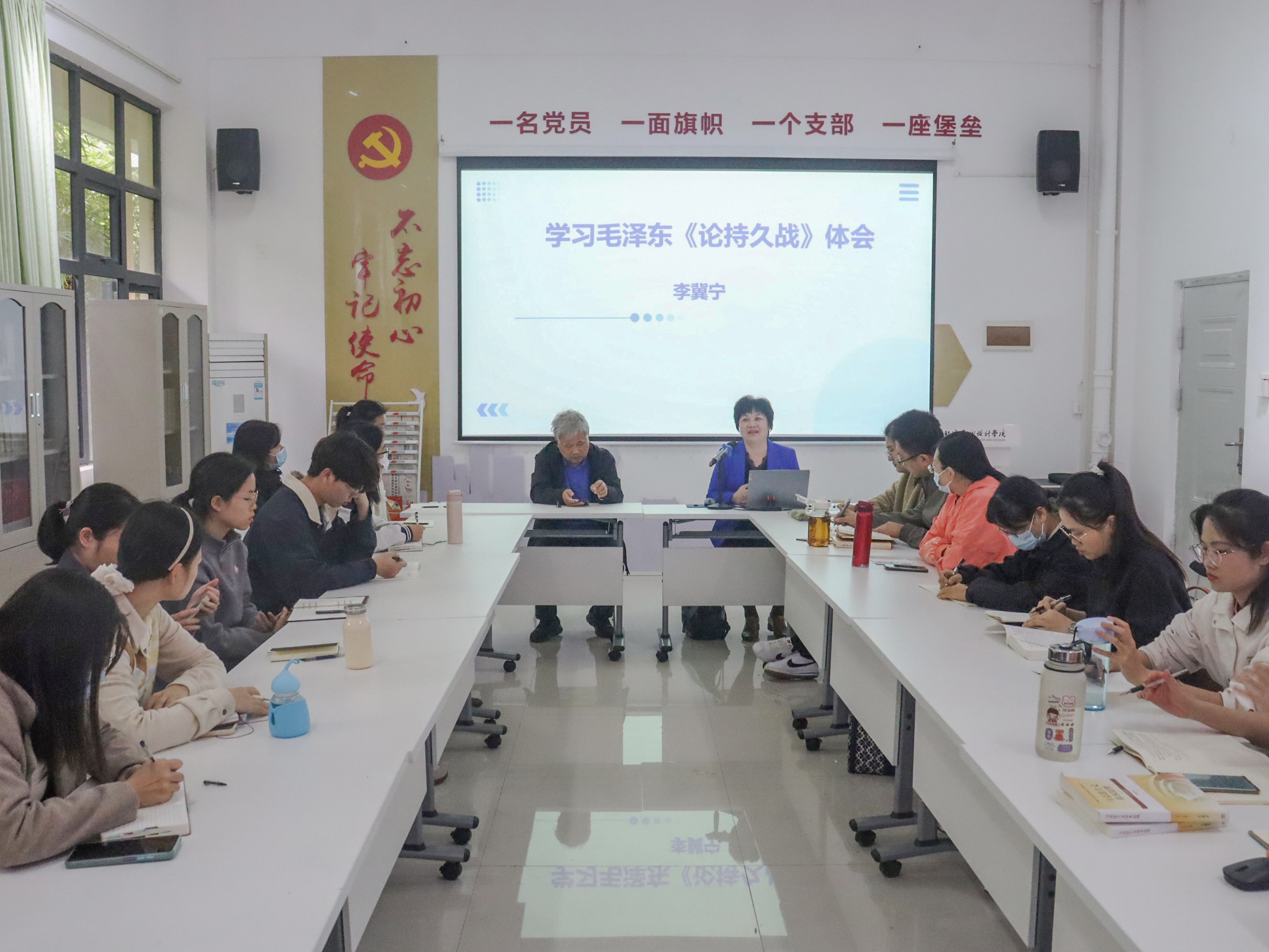 另外,她结合自身的教育经历,分享了《论持久战》在教学实践中的具体应用。她强调,该著作既是抗日战争时期的重要指导文本,也是大学生思想政治教育的经典教材,要引导学生理解伟大建党精神和人民战争观的重要性。活动最后,李冀宁教授引用了《论持久战》中的一系列经典语句进行精彩收尾。