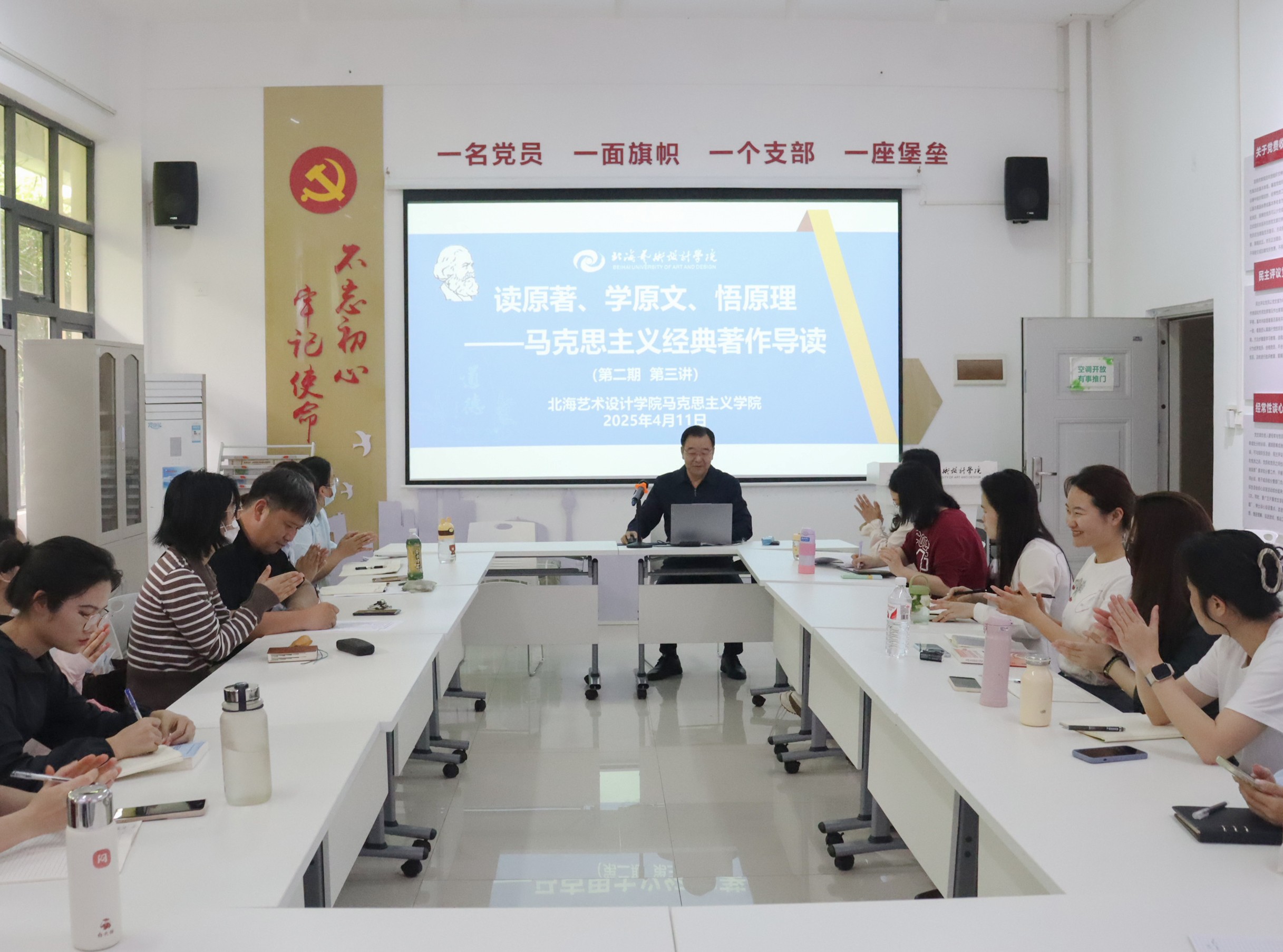 4月11日下午15:00,马克思主义经典著作导读系列活动第二期第三讲在西校区行政楼103圆满举办,活动由我院综合办主任王佳碧主持,刘兴仁副教授主讲《中国社会各阶级的分析》,学院全体中青年教师参加。