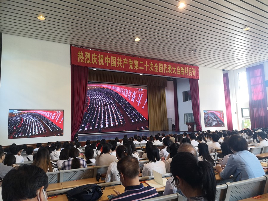 上午10时整,马克思主义学院按学校党委要求,组织教师在西校区大礼堂收听收看党的二十大开幕会,部分退休教师通过网络居家观看。在观看过程中,全体教师全神贯注、认真聆听、勤做笔记,现场雷鸣般掌声不绝于耳。