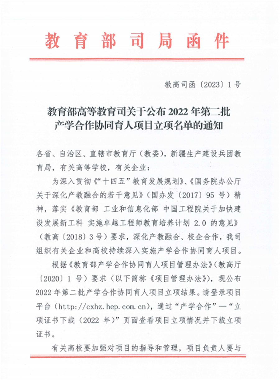据悉,教育部产学合作协同育人项目由教育部高教司组织,旨在深化产教融合、产学合作、协同育人,支持高校开展课程体系建设、教学内容改革、师资培训、实践条件建设等。教育部产学合作协同育人项目已纳入新一轮普通高等学校本科教育教学审核评估指标体系,目的在于促进教育链、人才链与产业链、创新链有机衔接,深化企业与高校的产学合作,推动高校人才培养改革。