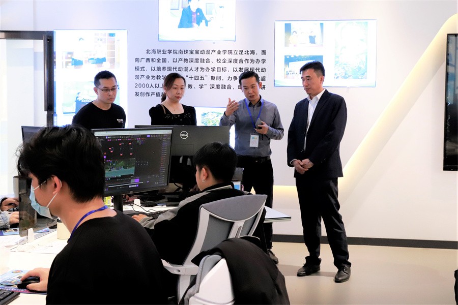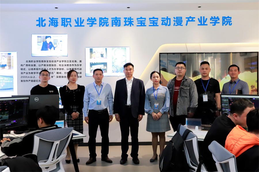 北海职业学院南珠宝宝产业学院企业方负责人带领我校一行到该校南珠宝宝动漫产业学院产教融合实训基地进行实地考察,深入了解该院动漫专业建设相关情况。