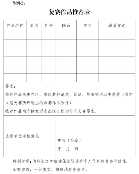 2.各高校须对参加初赛作品的意识形态进行审核把关,对 推荐进入复赛作品需出具意识形态书面审核意见。