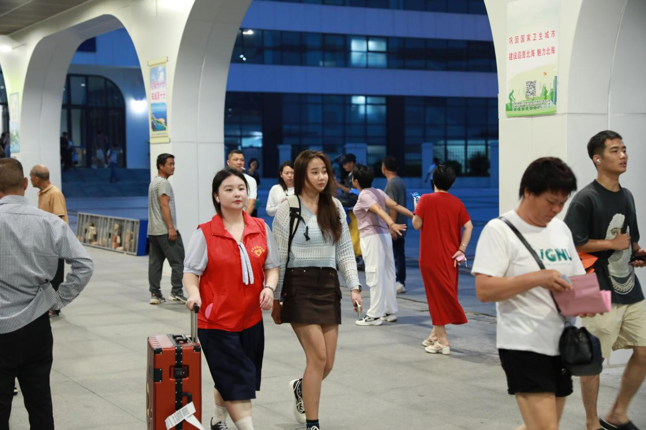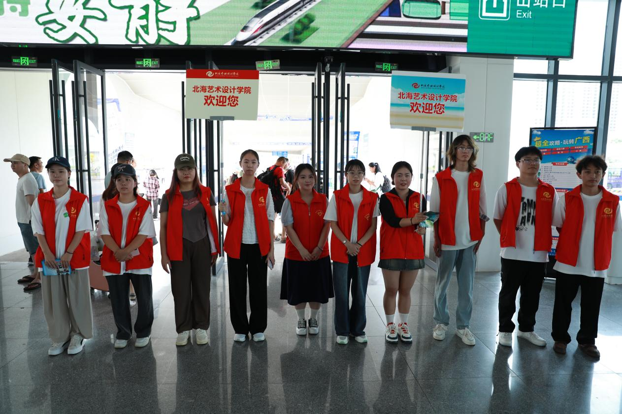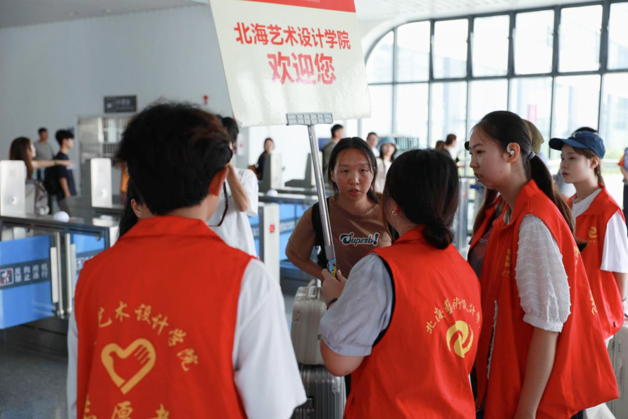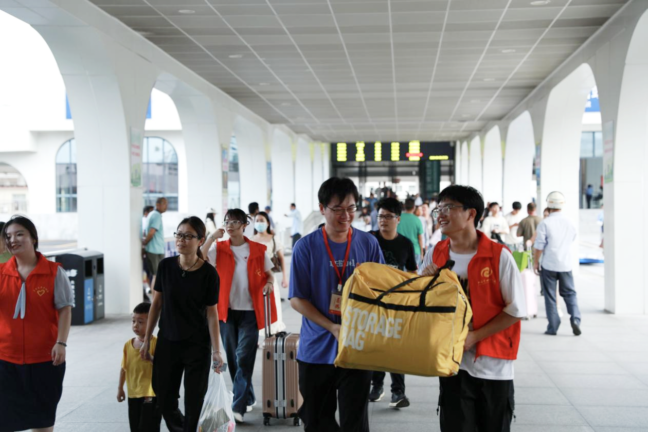 (志愿者在火车站点迎接新生)