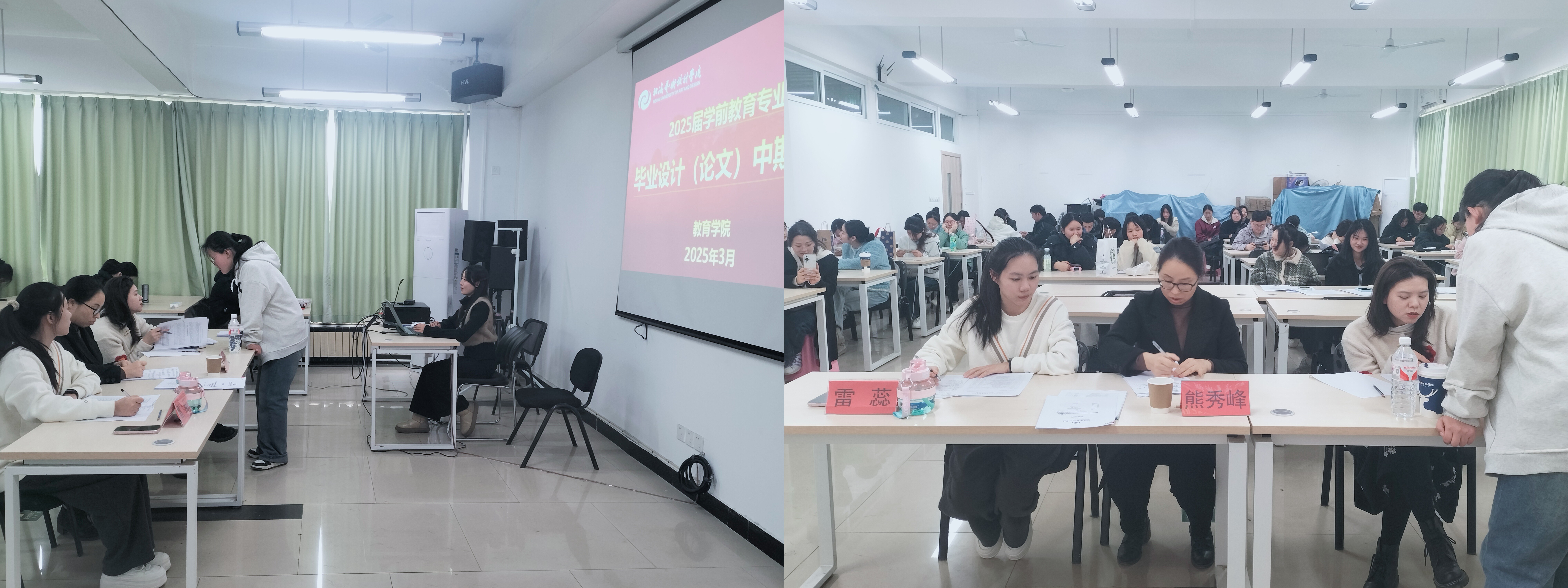 艺术教育专业和学前教育专业于2025年3月11 日至13日开展毕业论文中期汇报工作,参与答辩的老师包括院长熊秀峰、艺术教育教研室副主任周劲志、教务办主任黄海林、艺术教育专业老师赵华教授、学前教育专业雷蕊老师。同时,为了更好地帮助学生完成学业和就业,,各位老师于3月14日进一步深入地开展了个人论文和就业指导工作。