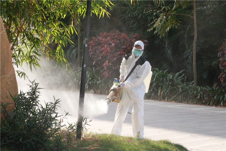 5月5日下午,学校根据《广西学校防控新冠肺炎疫情卫生清洁消毒指南》等文件的要求,对标对表开展第二次校园防疫消杀工作。严格遵照消杀工作流程、工作规范,学校总务处组织专员队伍对校园进行科学精准消杀。工作人员携带专业装备,使用有效氯浓度250㎎/L~500㎎/L的含氯消毒液,对学校东西校区的宿舍区、教学楼、图书馆、实训室、工作室、办公室、食堂、超市、厕所等场所进行全方位消杀,有力保障了我校师生复学复课的生命安全。