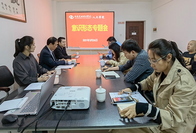 为落实意识形态工作,提高全体教职工的思想意识,2021年3月26日,人文学院在东校区211会议室开展了 “人文学院意识形态专题会”。该活动由蒙绍荣院长和李水亮副院长共同主持,人文学院全体教师参加会议。