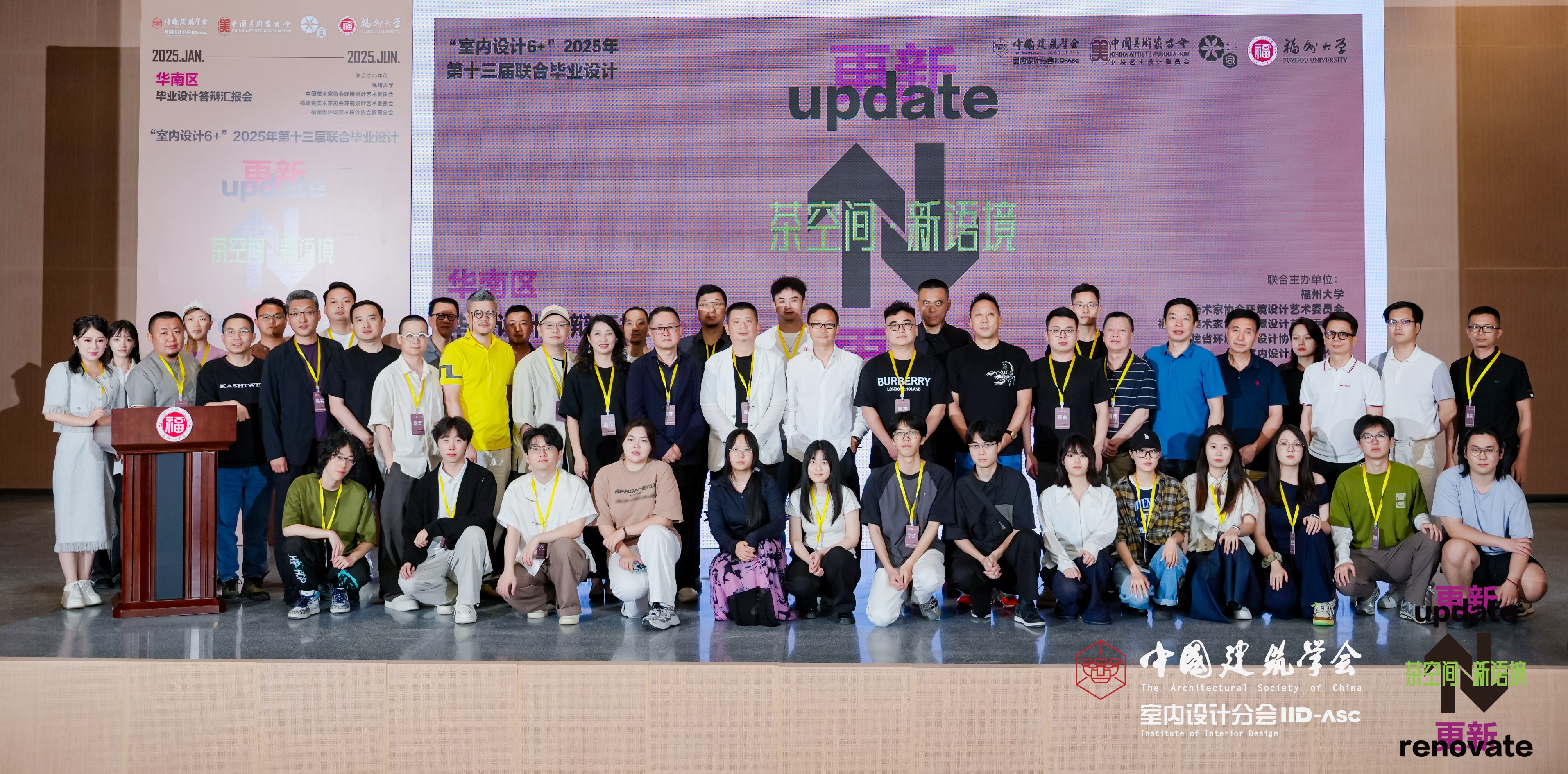 2025年1月17日,由中国建筑学会室内设计分会主办,福州大学、中国美术家协会环境设计艺术委员会、福建省美术家协会环境设计艺术委员会、福建省环境艺术设计协会教育分会、IID室内设计厦门工作站联合主办的室内设计6+”第十三届联合毕业设计华南区在线上举办开题报告会,明确了本届华南区总课题为“更(gēng)新·更(gèng)新——茶空间·新语境”,并于2025年6月14日在福州大学厦门工艺美术学院图展中心107报告厅成功举办毕业答辩汇报会。