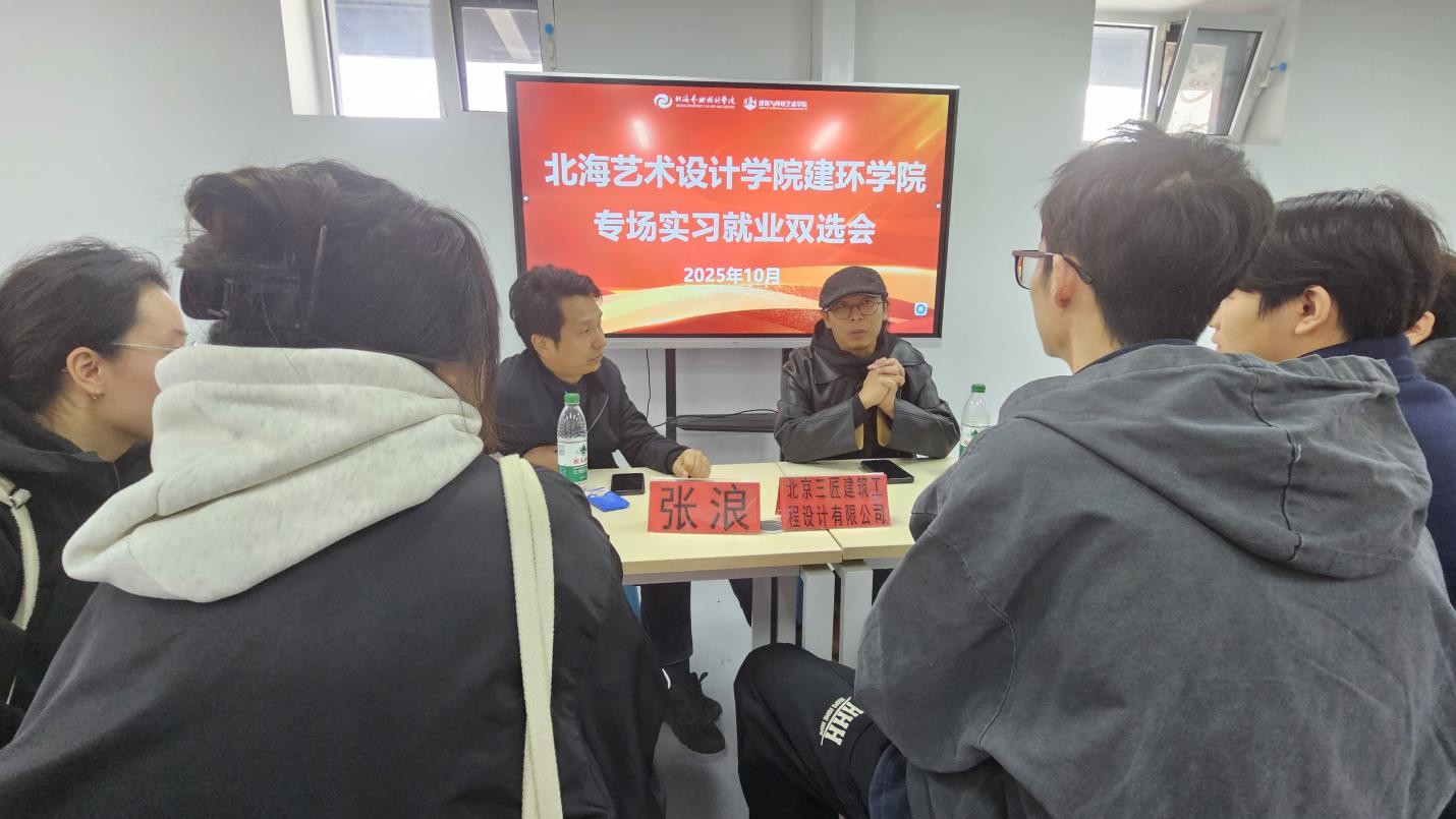 2025年10月31日上午,由北海艺术设计学院建筑与环境艺术学院主办、北京实践基地(宏福)承办的专场实习就业双选会在北京实践基地(宏福)服装楼顺利召开。本次活动以“精准对接企业需求、搭建校企沟通桥梁”为核心,构建起“宣讲+双选”的就业服务场景,为环境设计专业学子打通实习就业“最后一公里”。