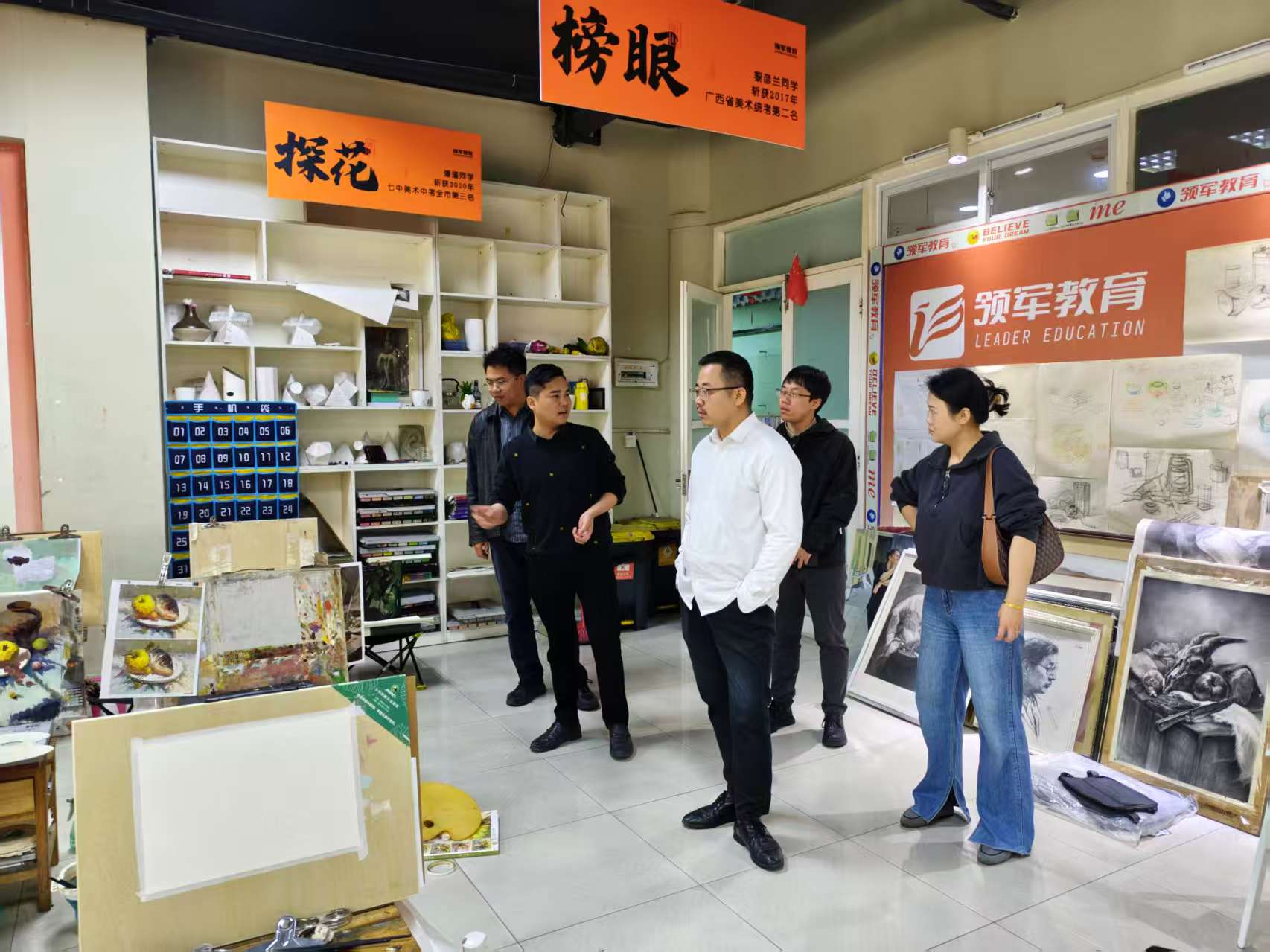 在领军画室考察期间,团队通过实地调研与座谈交流,系统考察了其运营模式及人才战略体系,并就校企合作的新模式进行了深入探讨。交流过程中,企业明确提出了对应届毕业生的核心能力要求,强调必须具备扎实的专业素养、认真负责、吃苦耐劳的工作态度,以及关爱学生的职业品质。
