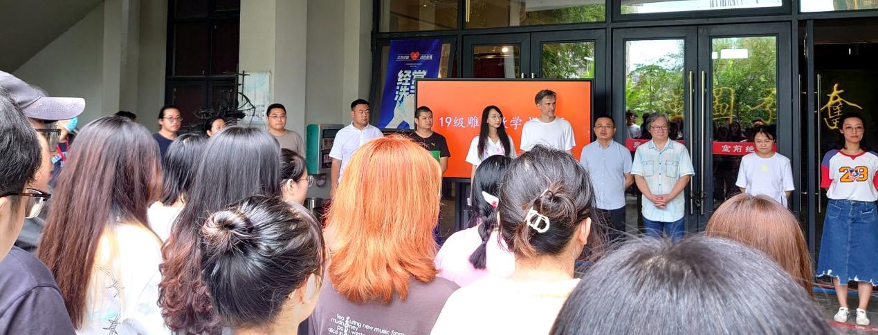 2022年6月2日上午,美术学院雕塑专业在艺术楼一楼成功举办雕塑专业“2019级教学成果展”开幕式,院领导美术学院常务副院长龚为、美术学院副院长金凯婧、美术学院副院长肖玺,其他部门领导李炫勋、鲁明阳,以及雕塑专业教师潘毅群先生、雕塑外籍教师波波夫、雕塑专业青年教师、雕塑专业全体学生参加了开幕式。开幕式由雕塑专业教师黄寿宁老师主持。