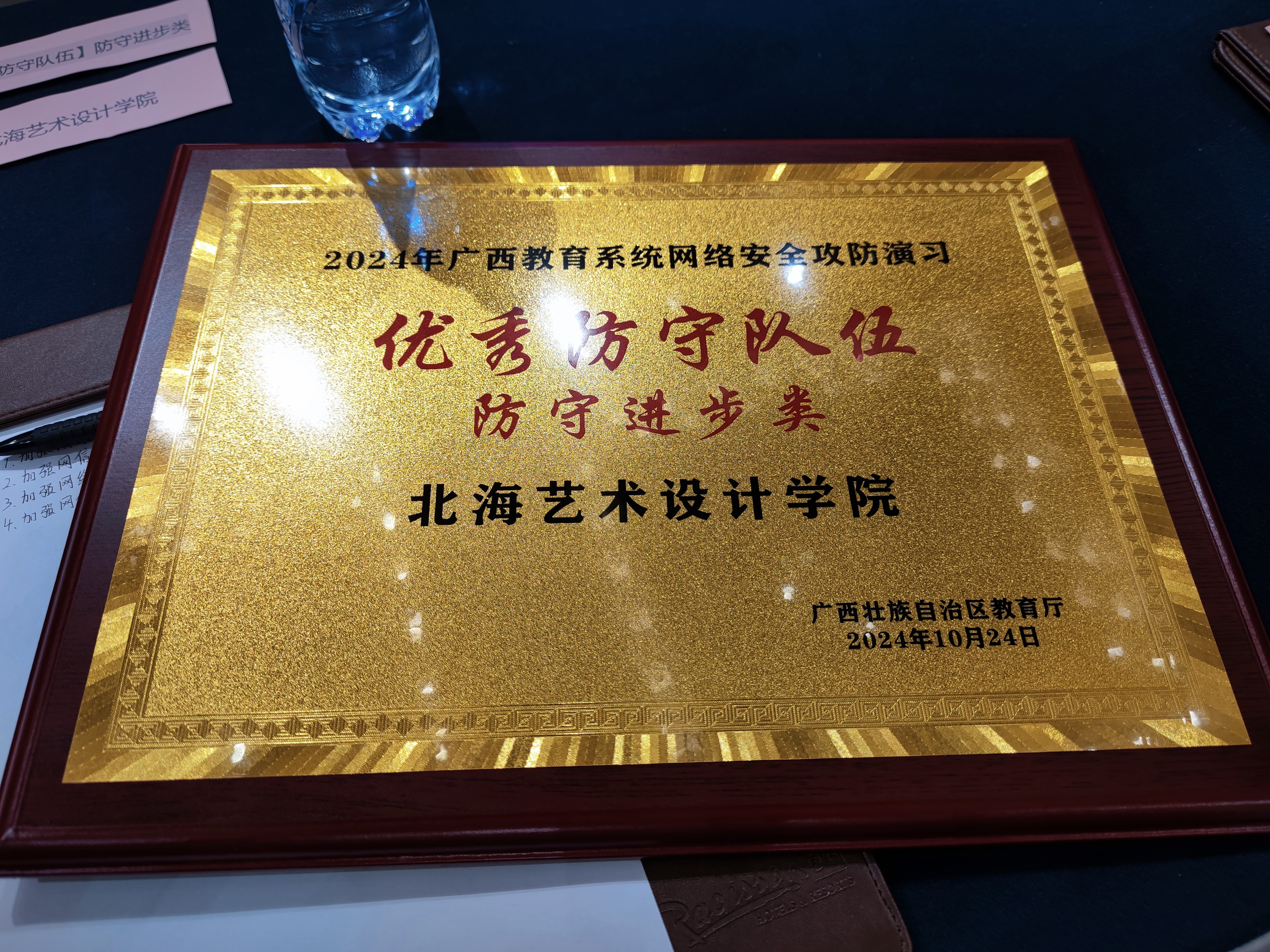 在刚刚落幕的广西教育系统网络安全攻防演习中,北海艺术设计学院防守队伍凭借出色的表现和显著的进步,荣获自治区教育厅颁发的“防守进步奖”。